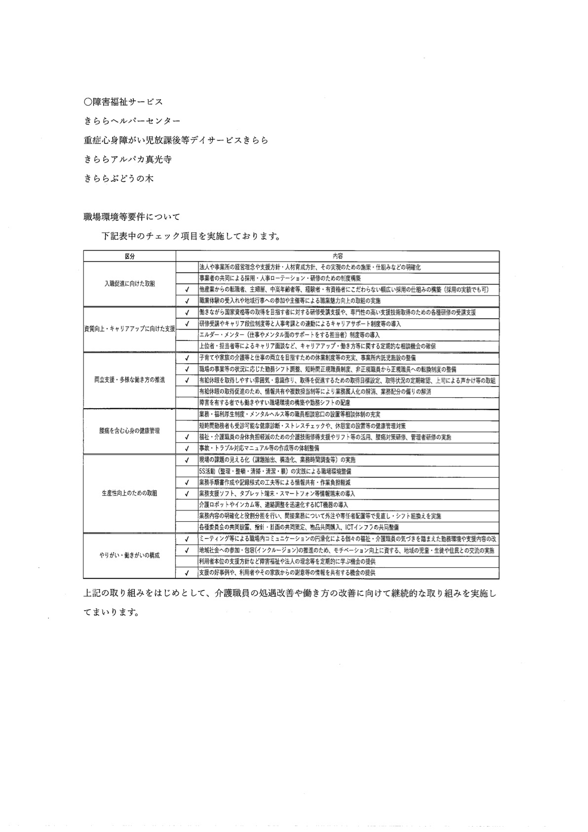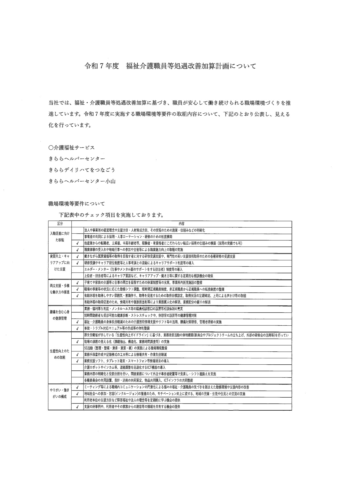 福祉介護職員等処遇改善加算計画について